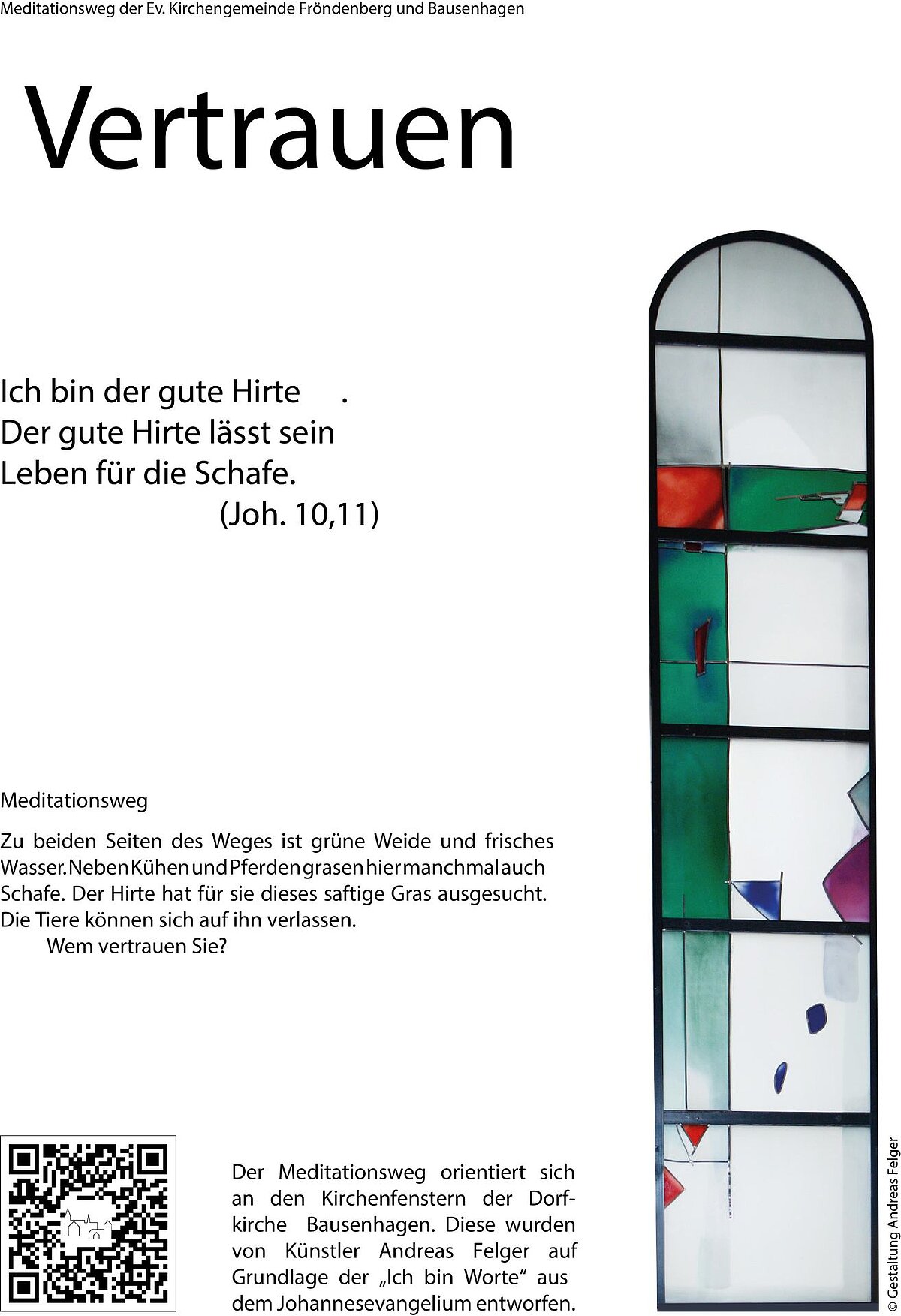 Felger verbindet das Motiv des gekreuzigten Jesus mit dem des Hirten, der für die Rettung seiner Schafe sein Leben einsetzt, es sogar verliert – in voller Verantwortung, in unendlicher Hingabe.